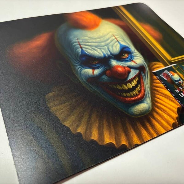 Dieses Mousepad bringt nicht nur Ordnung auf deinen Schreibtisch, sondern auch eine Portion subtilen Horror. Mit seinem starren Blick und dem viel zu breiten Lächeln begleitet dich der Clown durch lange Arbeitstage, nächtliche Gaming-Sessions oder düstere Schreibstunden.